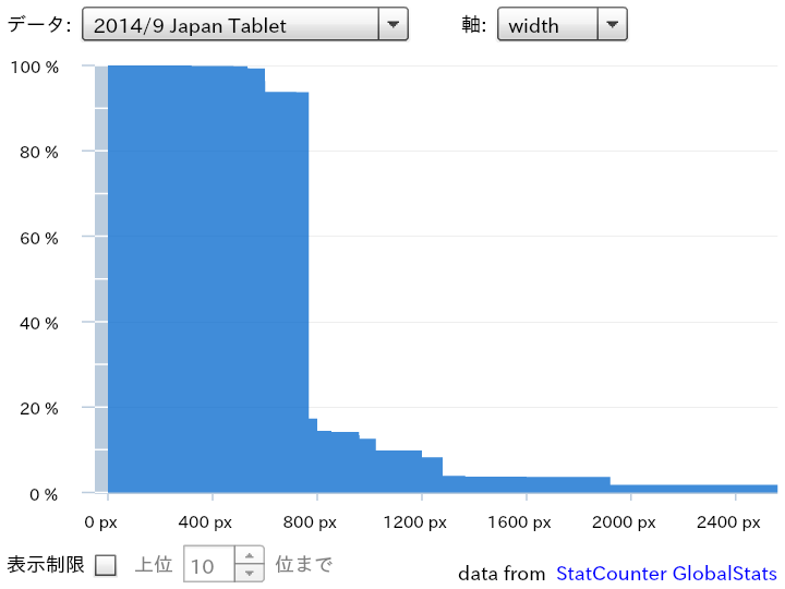 StatCounter GlobalStatsで公開されている画面解像度シェアのデータから、2014年9月のデータを抜き出して分析しました。